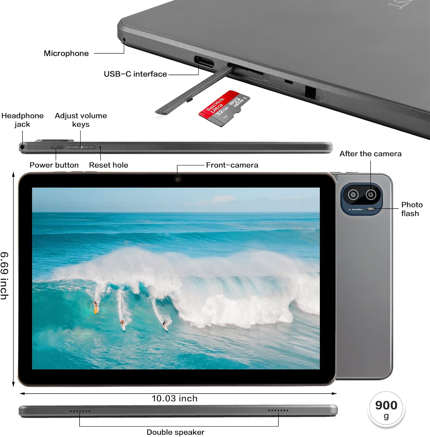 - Εξαιρετική κάμερα οπισθοπορείας 13 megapixel + μπροστινή κάμερα 5 megapixel: Το tablet διαθέτει μπροστινή κάμερα 5 megapixel που σας προσφέρει μια απαράμιλλη εμπειρία selfie. Με τη βοήθεια της κάμερας οπισθοπορείας 13 megapixel, μπορείτε να επιτύχετε φωτογραφίες υψηλής ποιότητας. Η στιγμή που καταγράφετε από τον φιλικό προς τον χρήστη υπολογιστή tablet γίνεται η πιο ζωντανή και αξέχαστη μνήμη σας και με τη μεγάλη οθόνη 10,0 ιντσών, μπορείτε να επεξεργαστείτε όλες τις λεπτομέρειες της φωτογραφίας.